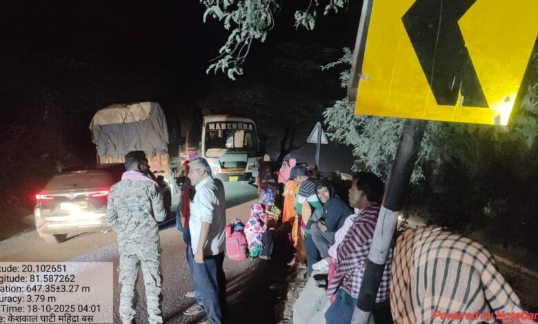 महिंद्रा ट्रेवल्स की बस केशकाल घाटी में खराब — यात्रियों को पूरी रात फंसे रहना पड़ा