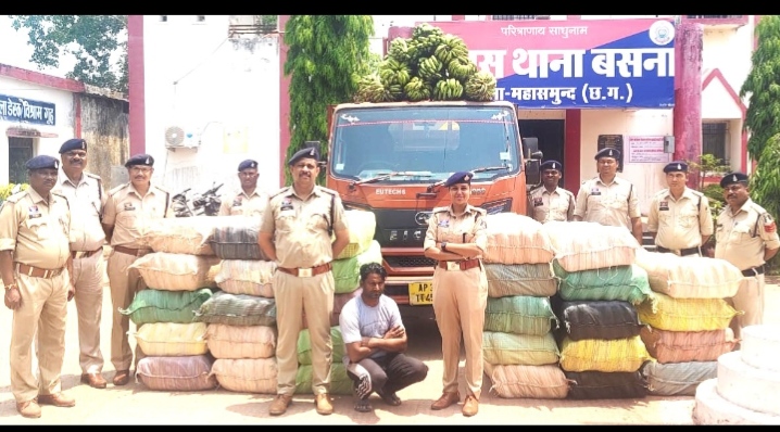*बसना पुलिस को सूचना मिली की एक आई शर क्रमांक AP 39 TT 4556में ओडिशा से गांजा लेकर आ रहा है पुलिस टीम द्वारा नाकाबंदी कर उक्त वाहन को रोका गया। वाहन की तलाशी लेने पर वाहन के अंदर लदे केला के बीच, 29 बोरियो में छुपाकर अवैध मादक पदार्थ (गांजा) मिला*